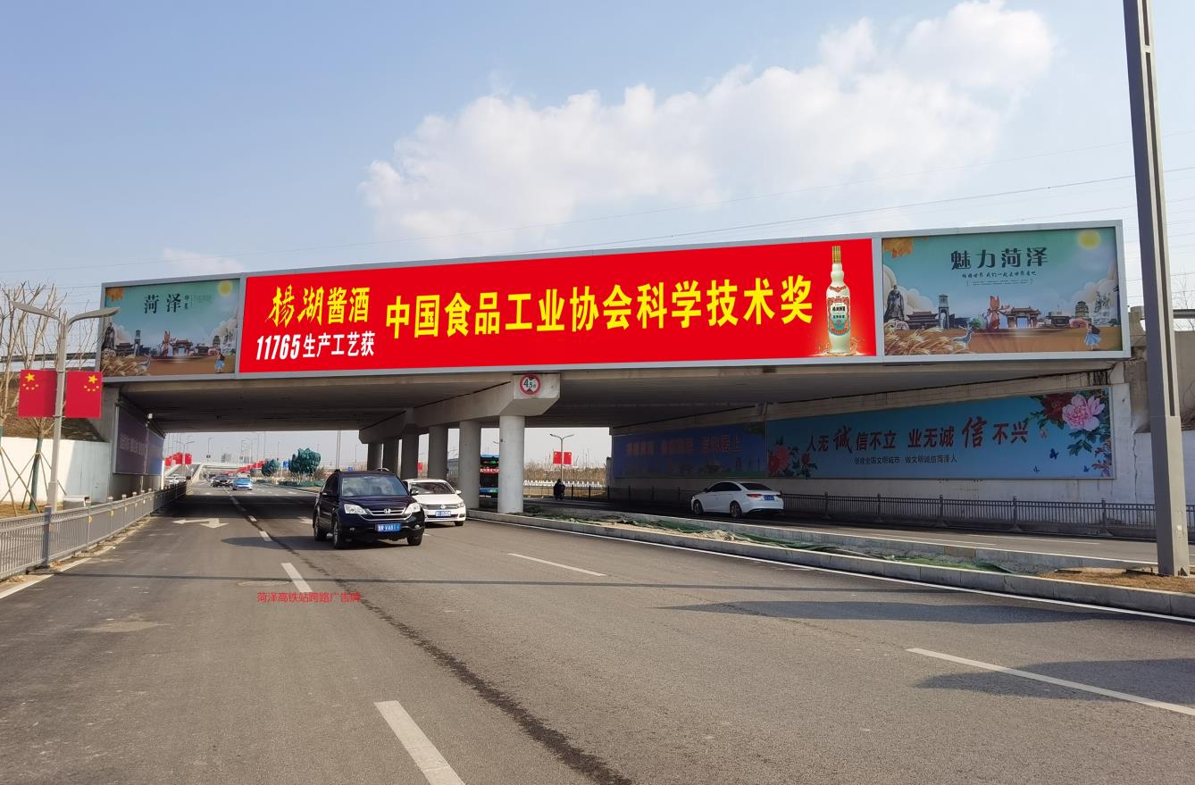 菏澤東站跨路廣告牌位置在高鐵站連接市區,牡丹機場必經之路,本媒體形式為跨街橋,橫堪稱“凡路過,必看到”,所有進出高鐵站必走,途徑必看;
