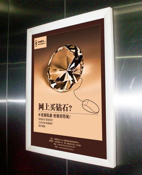 電梯框架廣告是指電梯轎廂內的廣告框,一般用來安裝廣告海報,起到廣告作用。電梯廣告框架是生活中最常見的電梯廣告類型,也最為普遍的類型,通常在商場、小區電梯內是常常可以看見的一種廣告方式。在投放此類廣告商一定要在海報設計上富有創意,采用多圖少字的設計,信息量充足,這樣才能達到傳播的效果。