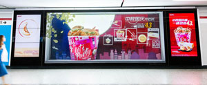 | 上海地鐵廣告-電子媒體--炫動畫墻 位于人民廣場換乘通道兩側,全天候高客流量 2塊PDP+墻貼、3塊PDP+墻貼及5塊PDP+墻貼,形式豐富多樣 屏幕高清巨大,畫面生動,支持動畫形式,極具震撼效果的電子長廊 |