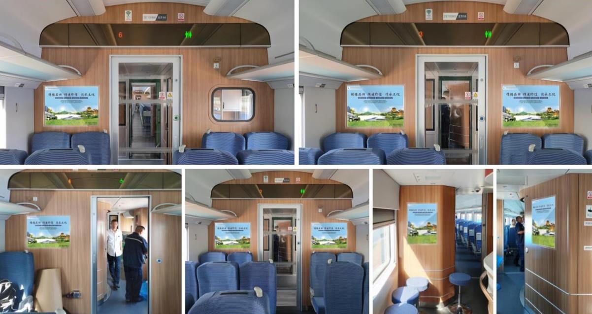 動車組列車規劃27塊(規格為50cm×75cm),材質為新型亞克力展板,采用膠貼方式安裝,無痕跡易清洗,具阻燃性和牢固性。