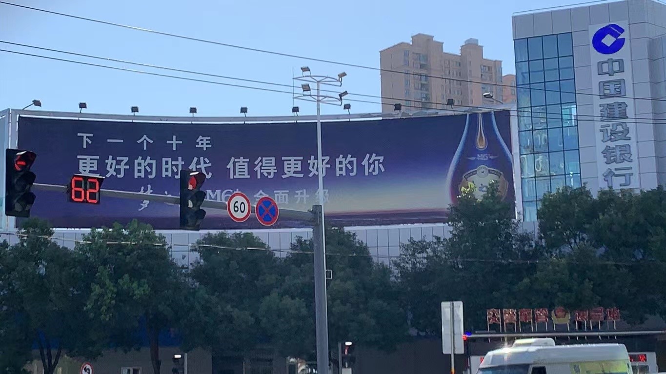 此廣告位于瑤坪南路十字路口幕墻廣告位,人車流量大,廣告位置顯著,效果好