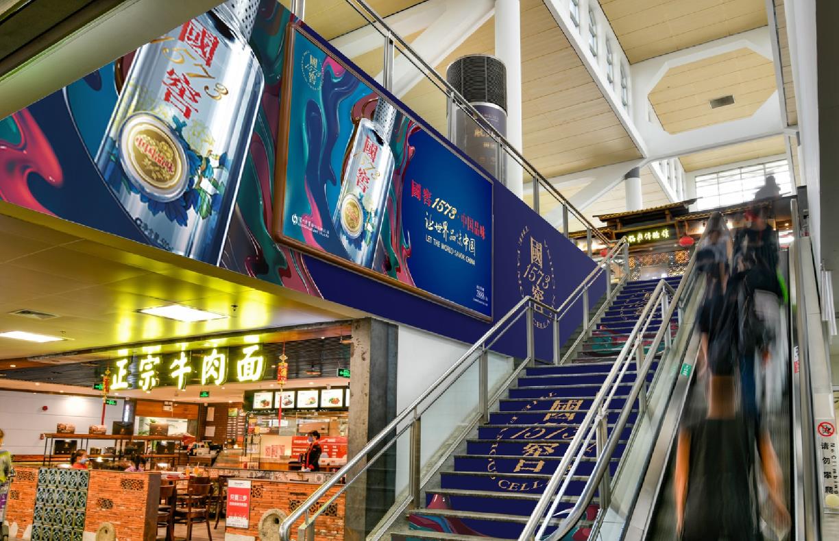 100%覆蓋國內出港旅客,到達旅客在下扶梯時也可清晰的觀看到該媒體,可視時間長,具有較強的視覺沖擊力,廣告效果極佳。