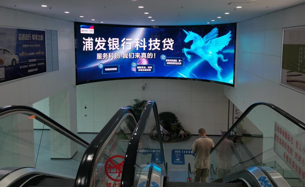 福州機場廣告-福州機場航站樓國內到達口下扶梯正迎面曲度屏led廣告