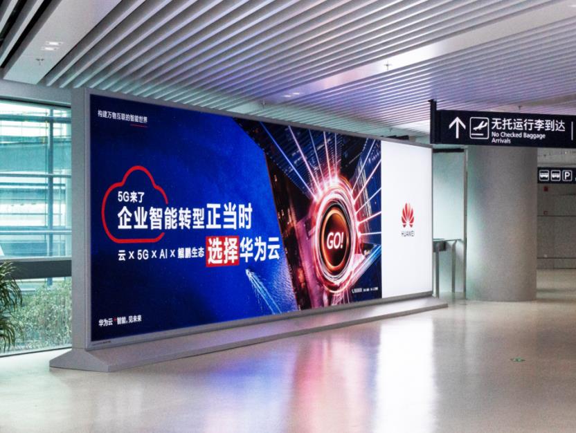 T2國內(nèi)出發(fā)安檢通道右側(cè)墻體上方led大屏廣告