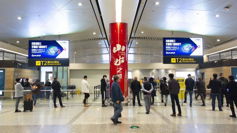 重慶江北機場廣告-江北機場國際行李廳刷屏機廣告