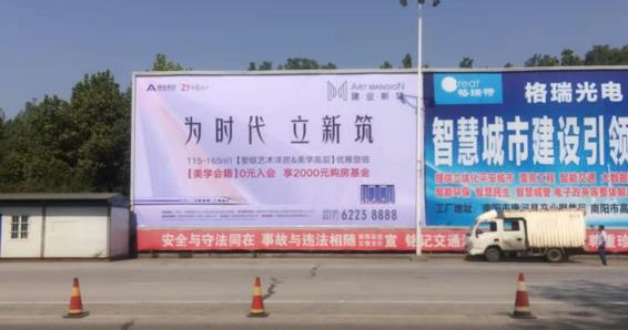 | 媒體形式 : 落地噴繪廣告牌 媒體規(guī)格 : 上:15mX6m=90㎡ 媒體說明 :該廣告位位于人民路與信臣路(原312國道)交叉口,信臣路上,落地廣告牌,北城主入口,廣告牌輻射城北,城西幾個縣城。可視面積大,可視距離遠(yuǎn),適合汽車,地產(chǎn)建材大客戶車流量:20萬/天;人流量:30萬/天,可視距離遠(yuǎn),視覺沖擊力強(qiáng),廣告效果絕佳。 |