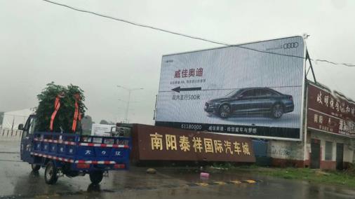 | 媒體形式 : 三面翻廣告牌 媒體規(guī)格 : 16mX8m=128㎡ 媒體說明 :該廣告位位于雪楓路迎賓大道北300米路東 泰祥汽車城大門口,三面翻大牌,可視面積大,可視距離遠(yuǎn),車流量:對面中商農(nóng)批發(fā)市場是南陽最大的食品流通批發(fā)市場,老國道,汽車城內(nèi)已入住開業(yè)10家4S店,下半年還有4家左右開業(yè),35萬/天;人流量:30萬/天,可視距離遠(yuǎn),視覺沖擊力強(qiáng),廣告效果絕佳。 |