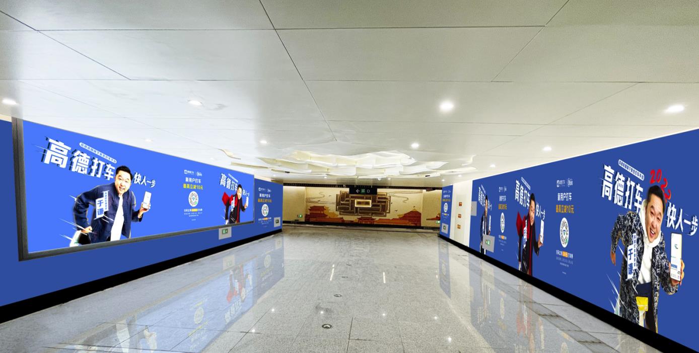 位于通道入口 ,正對地鐵站廳,雙側超大燈箱+墻貼直面乘客, 利于產生直觀品牌印象,提升品牌認知度