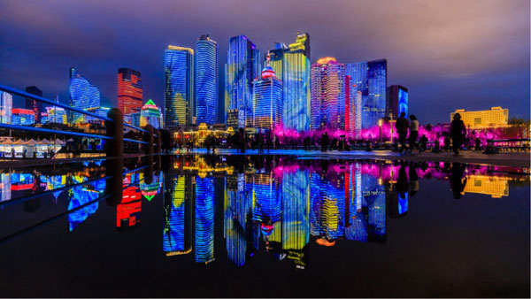 超級場景營銷舞臺 中國頂尖團隊呈現上合峰會主題燈光show 以城市為舞臺,以天地為畫布,量身設計,巨資打造 展現中國的氣度和實力,成為青島城市新名片