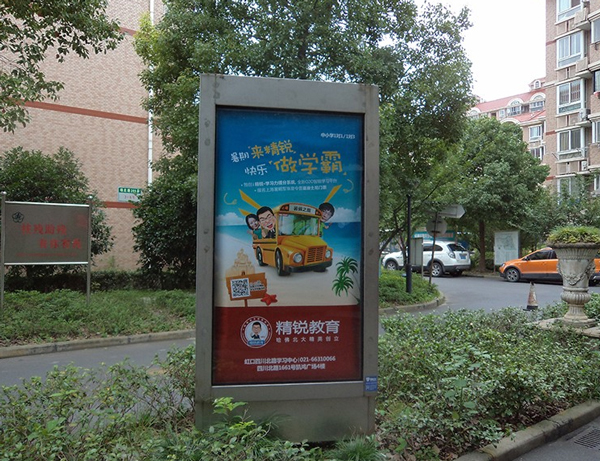 社區燈箱廣告:外觀精美,超薄超輕。燈箱最薄可薄至2厘米,最輕可輕至0.5kg。比傳統燈箱節能70%以上。國際領先的照明工藝技術,使光照更集中,更高效節能。獨有燈箱防閃動功能,燈管使用壽命更長。變線光源為面光源,光照度更為均勻、更柔和、視覺更舒適自然光線擬真色彩設計,圖像更加逼真悅目,視覺效果更加卓越。高科技導光板技術設計其原理及效果可媲美筆記本電腦的LCD顯示器。充分利用材料的逆光透射特性,光釋出高,光線傳播更均勻、自然。快速開啟設計,更換燈片更簡單、更快捷。