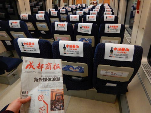 本次中壩醬油“搭乘”成渝線、成綿樂、成達(dá)專線高鐵,以成都為中心,覆蓋了重慶、資陽、內(nèi)江、永川、廣漢、德陽、綿陽、江油、眉山、樂山、峨眉山、樂至、遂寧、達(dá)州等城市,一段文化、一個(gè)故事、一個(gè)品牌陪你度過旅途的寂寥。