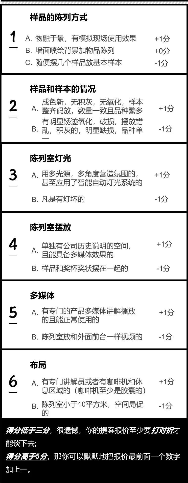 通過辨別樣品陳列室里的裝修,樣品樣本的色澤,新舊,選擇的樣品和展示方式,也可以大致判定甲方的預算寬裕度。