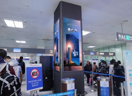 珠海金灣機(jī)場廣告-二層國內(nèi)出發(fā)大廳安檢前包柱燈箱廣告