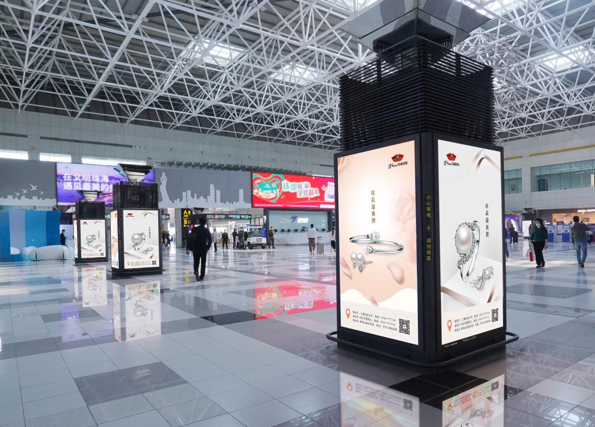 珠海金灣機場廣告-二層國內(nèi)出發(fā)廳包柱燈箱廣告